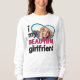 Esta camisola bonita é o presente ideal para qualquer namorada apaixonado. A legenda diz "Eu amo (coração) meu namorada LINDO" em fontes modernas cor-de-rosa-preto e escuro. Facilmente personalizável adicionando uma foto personalizada em um grande quadro azul em forma de coração.