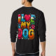 A design da camiseta apresenta a frase "Eu amo meu cachorro" em letras ousadas e brincalhonas, com um símbolo cardíaco substituindo a palavra "amor". Abaixo ou ao redor do texto, há ilustrações bonitinhas relacionadas a cães, como estampas de pata, ossos ou uma silhueta de um cachorro. O design dá uma vibração quente e divertida, perfeita para os amantes de cachorros expressarem seu afeto por seus companheiros peludos. A paleta de cores é simples e alegre, com cores contrastantes para fazer o pop de design numa variedade de fundos de camisetas.