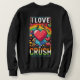 A design de camiseta para "I Love My Crush" apresenta um tema lúdico e romântico com letras arrojadas e vibrantes. A frase "I Love" é escrita em uma fonte grande, atraente, com a palavra "Crush" em um estilo diferente, possivelmente com um símbolo cardíaco ou embelezamentos lúdicos. As cores brilhantes como vermelho ou rosa para os elementos cardíacos contrastam com o fundo, fazer-o como design divertido e jovem. O olhar geral é relâmpago, perfeito para expressar afeto com um toque de capricho.