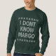 Celebre as férias neste engraçado "Eu não conheço Margo Ugly Christmas Sweater" Isto é perfeito para você! Super bonitinho para o inverno e todas as festividades de Natal e férias! Faz um presente de excelente para você e seu melhor amigo, para cortar ou comprar árvores de Natal também! e está disponível em tamanhos para bebês, crianças e adultos!