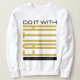 Esta camisola feminina apresenta uma fonte fatimi/lastica/telegraf impressão com ouro e letras pretas com um estilo tipográfico vertical/horizontal que mostra a frase "Faça com fé em seu senhor" neste tema de citação bíblica. Esta camisola é feita de 100% de algodão, esta camisa é ao mesmo tempo peluda e durável, que faz uma combinação de excelentes com uma imagem correspondente menor impressa no verso.