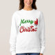 Docinho com Feliz Natal em texto verde e vermelho 3D e trenó de Papai noel. Sweatshirt disponível em várias cores.