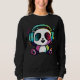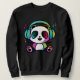 Moletom Feliz Panda com fones de ouvido ouvindo música.