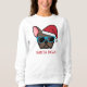 Celebre a estação festiva com seu próprio Papai noel patina um moletom de buldogue francês! Esta camisa engraçada de biscoito francês de buldogue é certamente o ponto de discussão em qualquer festa de Natal. O design apresenta um bonito e marrom buldogue francês, estilo cartoon, vestido de Papai noel com o texto "Papais noeis patas" impresso por baixo. Este design também está disponível com diferentes Bulls franceses de cor diferente.