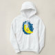 Um rosto amarelo feliz vestindo um chapéu azul e branco. Esta design parece realmente eficaz nesta Womens Hoodie