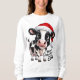 Esta camisola branca apresenta um lindo filhote de desenho animado vestindo um chapéu vermelho de Papai Noel com uma pompom e uma pompom brancos. O vitelo é preto e branco com nariz rosa e olhos grandes e expressivos. À direita do vitelo, o texto "Felizes feriados da VACA" é impresso a preto. O design geral é festivo e alegre para a época de férias.