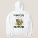 Stack warmth and success. The “Financial Freedom” woman's zipper hoodie showcases a bold sketch of bills reclining on a beach chair, surrounded by sunburst rays and framed by empowering typography. Perfect for entrepreneurs, investors, and freedom-seekers.