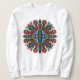 Camisola psíquica de moletom para mulheres, com uma mandala de cogumelo com olhos e flores. O estilo engraçado dessa ilustração se parece com a arte hippie dos anos 60.