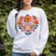 Camisola Flores Retro Coração. © Camisolas & Suéteres na Zazzle. Este suéter tem um coração feito de flores retro.
