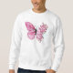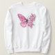 Flower arrangement of pink butterfly with pink Japanese cherry blossoms on white background.