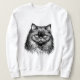 Fluffy Persian Cat Sketch Women's Sweater." A beautiful monochrome portrait of a majestic long-haired cat. This hand-drawn sketch design offers a chic, vintage feel. Perfect as a unique gift for cat moms and women who love animal art apparel. Stay cozy in this white women's sweatshirt!