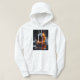 Um capuz branco de homem desenhado para fazer uma declaração. A frente ostenta um impressão de bola de fogo surpreendente, adicionando um toque dinâmico e energético. Vire-se, e o verso apresenta a palavra "FOGO" em negrito, complementando o tema da festa e criando um olhar distinto que atrai a atenção.