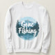 Um na moda com um lago de montanha e o texto "Foi pescar".