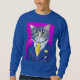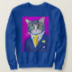 Camisa doce num gato cavalheiro digno, com olhos verdes, num terno listrado azul, com gravata amarela e flor de lapela