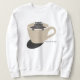 Uma ilustração super fofa de um pequeno gato sentado dentro a xícara, espiando por uma expressão adorável. Perfeito para amantes de gatos que apreciam kawaii e design aconchegante.