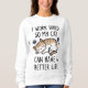 Para cada pai de gato devotado, esta design fala a verdade hilária. A citação, "Eu trabalho Duro para que meu gato tenha uma vida melhor," é combinada com um gato de mesa adormecido, captando perfeitamente a motivação por trás de todo o seu trabalho de duro. É uma declaração engraçada e relacionável para qualquer provedor orgulhoso de um felino mimado.