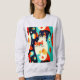 Camisola num design de inspiração moderna do século médio com dois gatos estilizados em formato ousado e geométrico de laranja, lacre, preto e branco. padrões abstrato e formas retrorativas enchem o fundo, dando-lhe uma vibração divertida e vintage com uma borda minimalista.