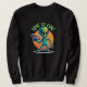 Uma alienígena verde lançando um disco de golfe, aspas de tempo para disco. Cartoon retro vintage do disco de alienígena.