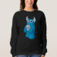 Suéter fofo e assustador com um demônio de desenho animado azul com crânio de kawaii e aparência louca.