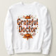 Camiseta de Ação de Graças de Cozy projetada para médicos que valorizam gratidão e cuidado. Possui um estilo sazonal festivo que é perfeito para turnos hospitalares, reuniões familiares ou celebrações de outono. Um presente de feriado para heróis da saúde durante a temporada de obrigados.