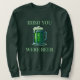 Uma Rua inteligente. A design do Dia de Patrick com uma caneca de cerveja verde e gelada com trevos, combinada com o trocadilho "Irish You was Beer", uma reviravolta divertida em "Eu queria que você estivesse aqui", perfeita para adicionar humor ao espírito de feriado.