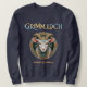 Stay cozy while showcasing your love for Grimmloch with this fantasy sweatshirt, featuring the official emblem of the narrative-based RPG by Opulent Code LLC. The detailed horned goat crest, paired with rich teal and gold tones and full Grimmloch branding, creates a bold and striking front design.