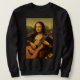 A Mona Lisa de da Vinci que escolhe uma guitarra acústica, com uma criança que olha sobre. T-shirt, posters, cartões, presentes.
