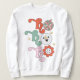 Ho Ho Ho Groovy Disco Retro Christmas Womens Sweatshirts apresenta o texto festivo colorido "Ho Ho" na tipografia moderna, acentuado com uma bola de disco, um boneco de neve e uma flor de margarida. Perfeito para o Natal e feriados. Criado por feriados Evco www.zazzle.com/store/evcoholidays