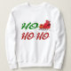 Sweatshirt com ho ho ho em texto verde e vermelho em 3D e Papai noel para dormir. Sweatshirt disponível em várias cores.