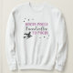 "Hocus Pocus I need cafeon to focus" rime engraçado costume café, camisa de suor personalizada para ela, para o Halloween, apresenta um moderno design de decoração roxa e tipografia negra com bruxas voadoras e sotaques estelares. O estilo de camisola de manga longa das mulheres pode ser modificado.
