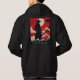 Ilustração de um carregando de samurai uma espada contra fundo de lua, com escrevendo em japonês