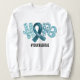 This meaningful awareness sweatshirt features a beautiful, hand-painted Teal watercolor "HOPE" design where the letter "O" is replaced by a graceful awareness ribbon. The aesthetic blends a soft, boho-chic style with textured patterns like chevrons and polka dots, creating a warm and approachable look for sensitive causes. Designed with versatility in mind, the neutral earthy tones of the ribbon make it a compassionate choice for various types of cancer awareness, including childhood cancer, appendix cancer, or sarcomas, or simply as a general symbol of solidarity and strength.