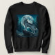 A beautiful image of a gray wolf in a forest howling at a full moon