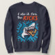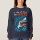 This design features a cool blue shark and a victim kicking and splashing in its jaws. Above are words, “I do it for the kicks.” This shark is having so much fun, especially this busy summer. Who knew humans could be so much fun?