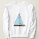 Veleja para o pôr do sol. Uma bela ilustração de um iate de navegação azul claro. Perfeito para quem ama barcos, ilustrações bonitas, iates e barcos à vela. Presente de aniversário ideal, decoração infantil, arte de quarto infantil, decoração doméstica, presente de Natal ou presente para qualquer outra ocasião especial.