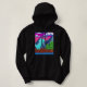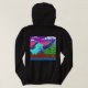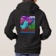 Camisola com capuz engraçada para mulheres adultas com ilustração de dinossauro pixelado; Este design nostálgico engraçado apresenta arte pixelada de um dinossauro na natureza. Há montanhas, árvores de pinheiro e nuvens no céu colorido. Na frente da camisola com capuz, fonte pixelada "START" e atrás fonte pixelada "GAME OVER", usei uma paleta de cores vibrantes para dar à arte uma estética de videogames dos anos 90.