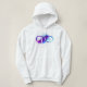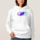Símbolo do infinito com uma bela pena pintada em cores vibrantes roxas e azuis sobre um fundo branco.