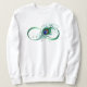 The symbol of infinity with a bright, green, artistic peacock feather on a white background. Tattoo style.