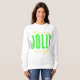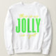 "Isto é tão alegre quanto eu", frase em amarelo e verde. A palavra "jolly" está em impressão verde e as outras palavras estão em caracteres amarelos cursivos. Para aqueles que estão em mais lugares de férias sedados.