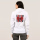 Esta jaqueta de capuz feminina é mostrada em branco com um impressão de arco alegre. Cores Preto e Vermelho Personalize este item mais ou comprar como está. Impressão licenciado