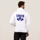 Esta jaqueta de capuz masculina é mostrada em branco com um impressão de torcida. Cor Real Azul Personalize este item mais ou comprar como está. Impressão licenciado