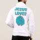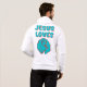 Isso significa que capuz tem uma mão azul com um dedo apontador e um contorno vermelho de sombra exibindo as palavras "Jesus ama" em uma impressão ousada com um contorno de sombra correspondente no tema da citação baseada na fé. Este capuz é incrivelmente macio e relaxado, jogado de um excelente de mistura de poli-algodão para o visto cotidiano tem uma grande imagem correspondente no verso.