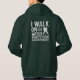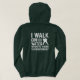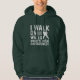 Hóquei sobre o tema capuz com um jogador branco de hóquei em silhueta com bastão de hóquei e texto branco que lê "I Walk On Water What's Your Superpower"?