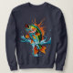 A bold women’s sweatshirt featuring a colorful fish leaping from water. Great for stylish anglers and sea lovers.