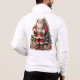 O capuz é uma mistura deliciosa de conforto e alegria festiva. Feito de tecido macio e quente, é perfeito para a estação festiva. A frente é enfeitada com decoração de Natal pequena e fofa, acrescentando um toque divertido ao design geral. A parte de trás do capuz é onde a magia real acontece. Uma árvore de natais vintages clássica, completa com bolhas coloridas e uma estrela brilhante no topo, ganha palco central. A árvore é lindamente detalhada, dando a ela uma sensação encantadora e nostálgica. Ao lado da árvore, uma imagem alegre do Papai Noel é representada, completa com seu traje vermelho, barba branca e um cheio de presentes. O Papai Noel é desenhado em estilo clássico, lembrando as cartas de natal vintage. A combinação da adorável decoração de Natal na frente e da árvore de natais vintages clássica e do Papai Noel na parte de trás faz deste capuz um pedaço perfeito de traje de férias. É uma peça de espírito de Natal que certamente trará alegria e calor a qualquer um que a vista.