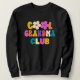 Legal camiseta do Clube Vovó feita em letras douradas, puffy e coloridas diferentes. 2 Flores Bonito. Lembre À Vovó Como Ela É Legal.