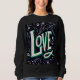 A bold floral-letter design featuring the word Love in green-teal shadow on navy, surrounded by white vines and tiny orange blossoms. Distinctive, vintage-inspired typography for apparel.