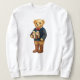 This blue tartan Christmas sweathirt has a cute preppy bear holding a gift.