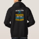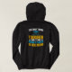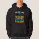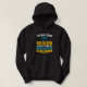 O capuz do tema do hóquei para a mãe de hóquei com paus de hóquei e paus com texto de branco, amarelo e azul que lê A única coisa mais forte que um jogador de hóquei é sua mãe!