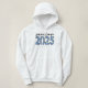 Esta vibrante e na moda design apresenta a palavra "mais velho" escrita em uma fonte em negrito, preto e cursivo sobre os grandes números "2025". Os números são preenchidos com um fundo azul adornado com margaridas brancas, dando ao design um olhar fresco e alegre. Perfeito para comemorar a classe graduada de 2025, esta design é simultaneamente atraente e significativa, fazer é a escolha ideal para um capuz comemorativo.